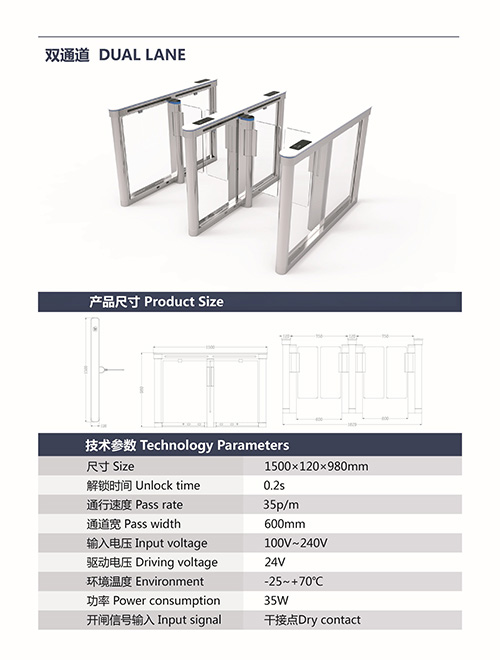 速通門規(guī)格B307系統(tǒng)設(shè)有過流保護(hù)裝置,當(dāng)負(fù)載_過某設(shè)定值(如 2._),系統(tǒng)停止工作,以免燒壞電機(jī)等設(shè)備。